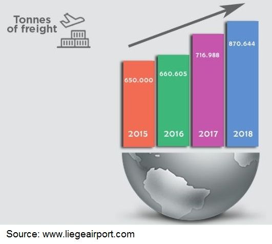 According to Liege Airport, the leading cargo airport in Belgium, 2018 was another year of substantial growth. Following 2017, already a record year with 717,000 tonnes of goods, 2018 has closed with a total of 870,644 tonnes transported, a 21.5% increase!
