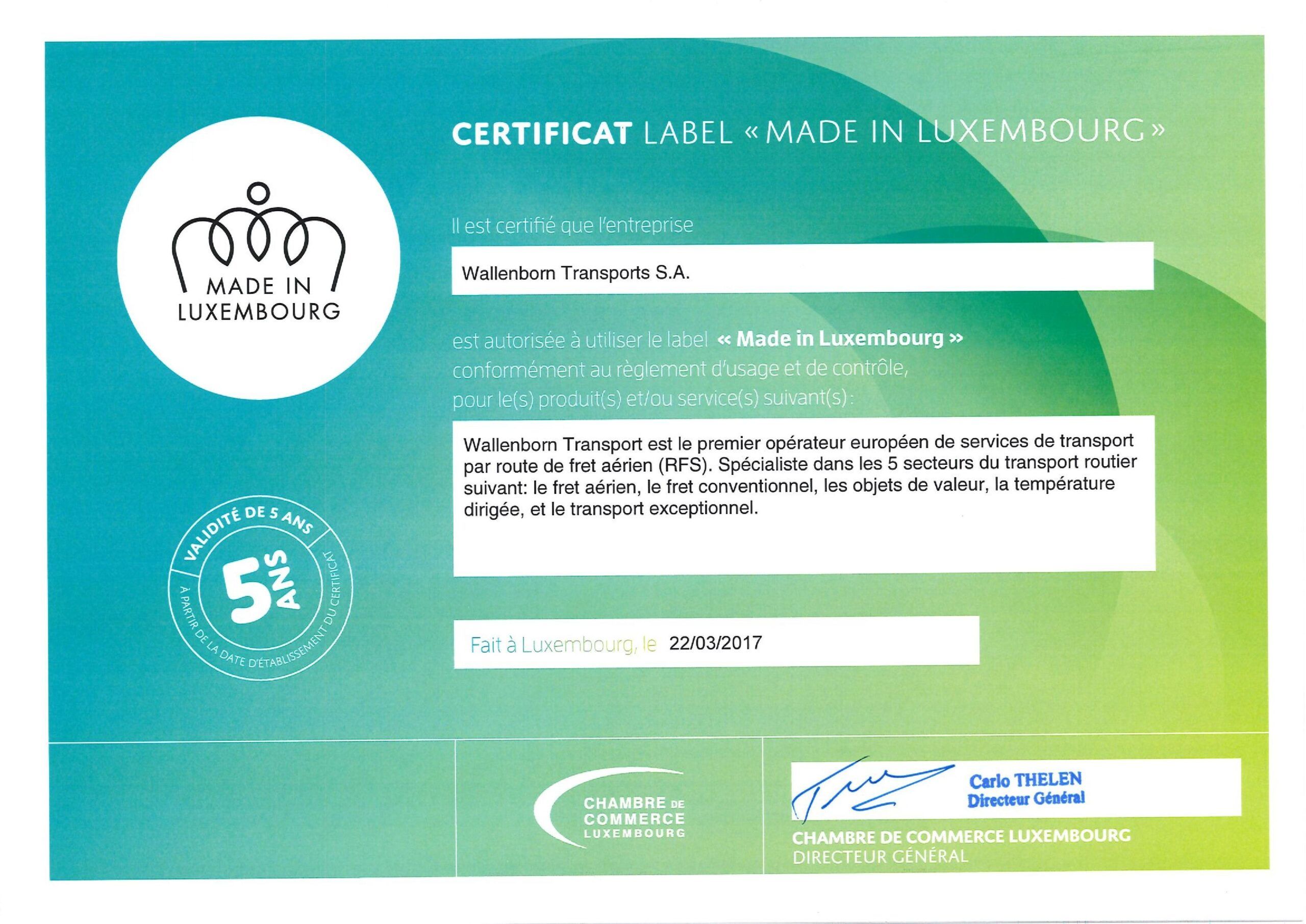 Knowing how to differentiate products and services for customers is crucial in order to stand out not only on foreign markets, but also on national ones. At Wallenborn we are always looking for new ways to differentiate ourself and we are strongly committed to quality at all times. As such, we hope our clients consider the “Made in Luxembourg” certification an additional quality assurance.