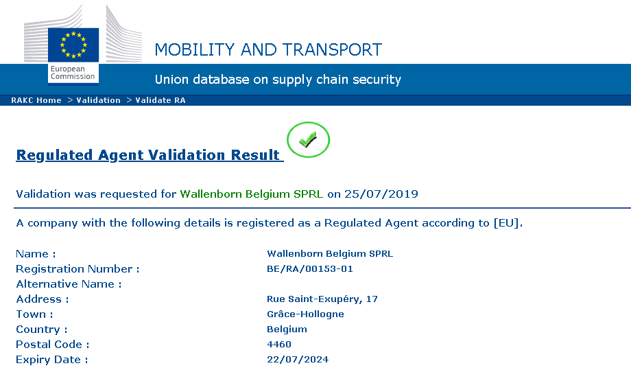 Our Belgian branch, Wallenborn Belgium SPRL, passed the audit to become a Regulated Agent.