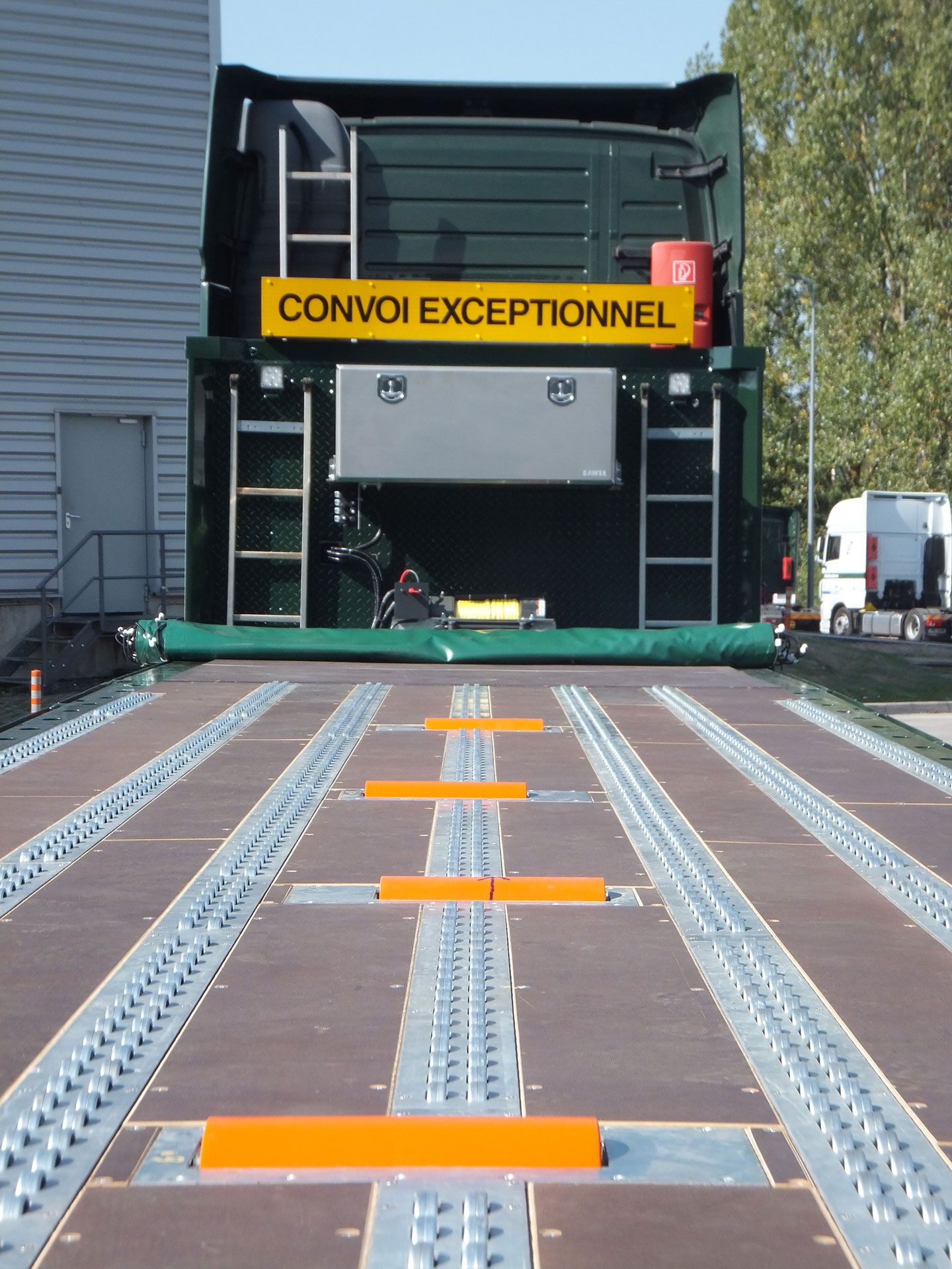 The trailer is equipped with 6 powered cargo roller (PCR) units which, together with the winch provide more than enough strength and ability to safely move even the heaviest of engines. The PCR units are located in the center of the trailer floor, situated in all three sections of the floor, and 2 pneumatic palletstops are also positioned at the rear of the trailer for maximum security.