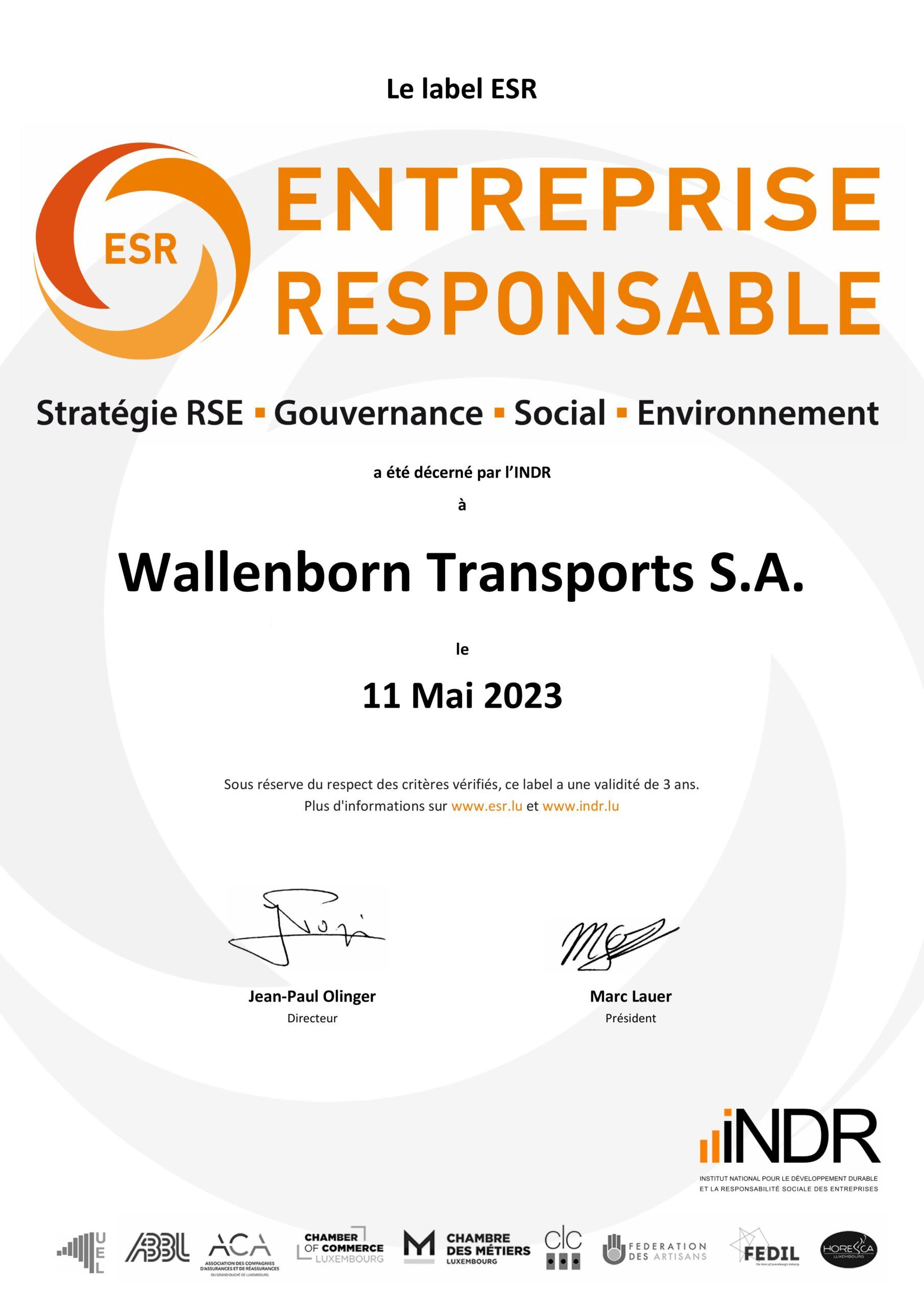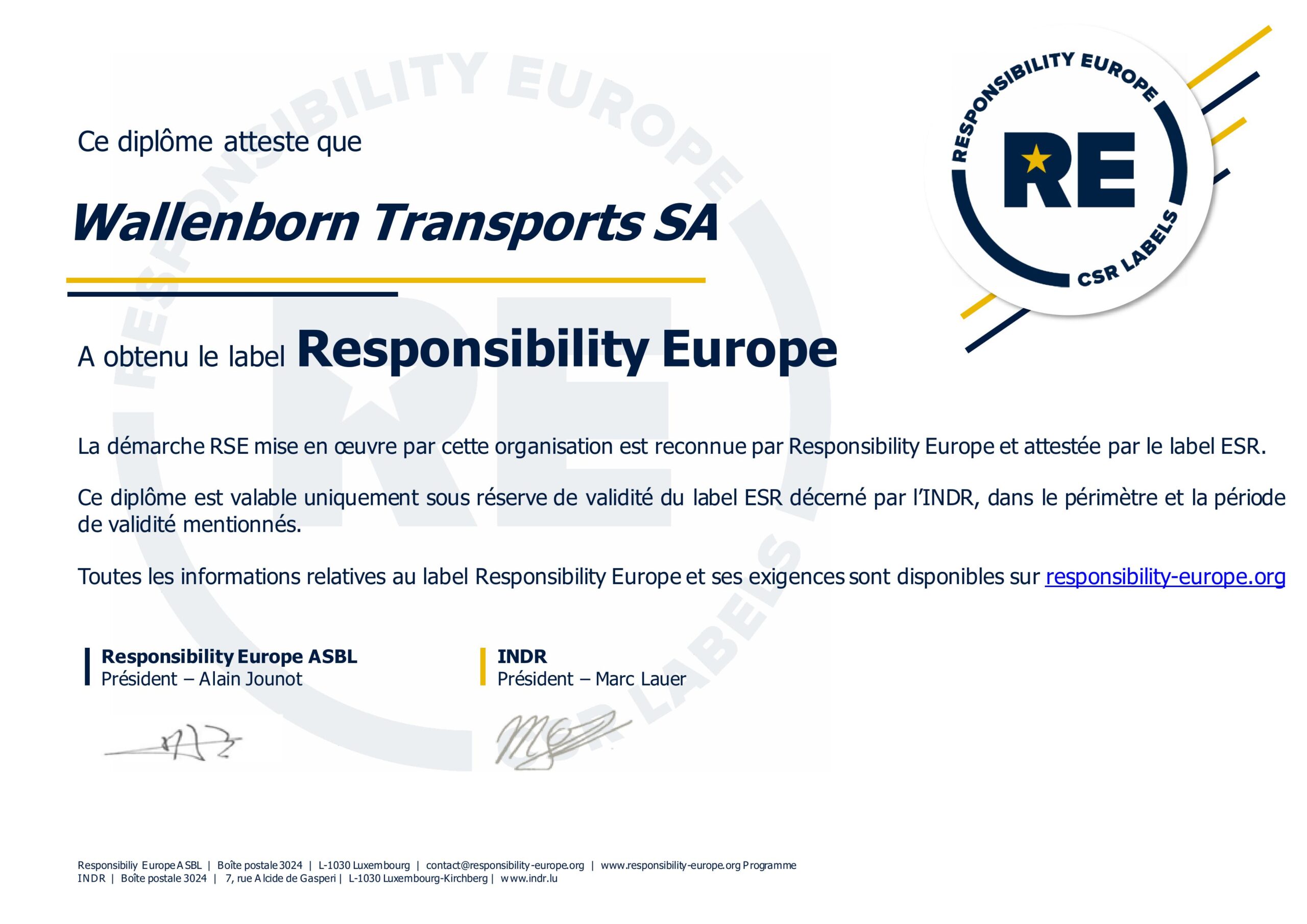 CSRD is a European regulation that requires companies to disclose detailed sustainability information. This directive ensures transparency in environmental, social, and governance (ESG) practices. For companies, it enhances accountability and helps attract responsible investors. Customers benefit from CSRD as it provides trustworthy insights into our sustainability efforts, enabling informed purchasing decisions. Since April 2025 Wallenborn Transports S.A. is no longer subject to CSRD.